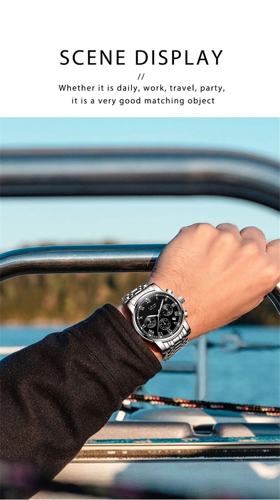 - The stainless steel watch case make the watch more durable.