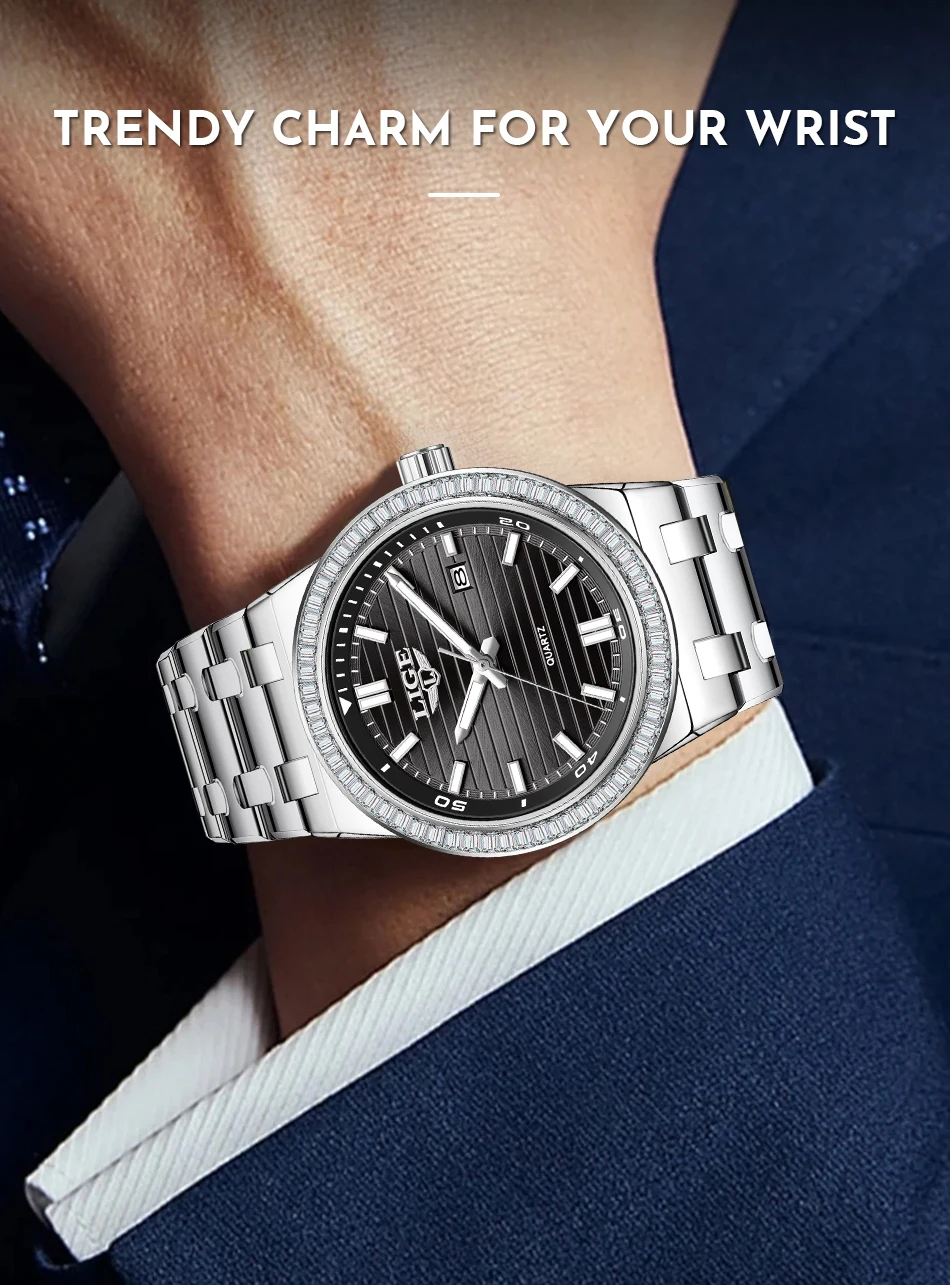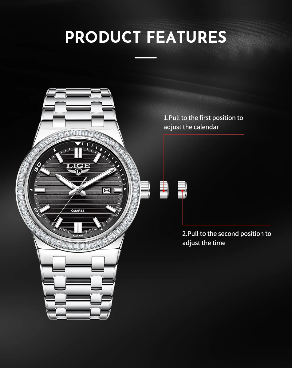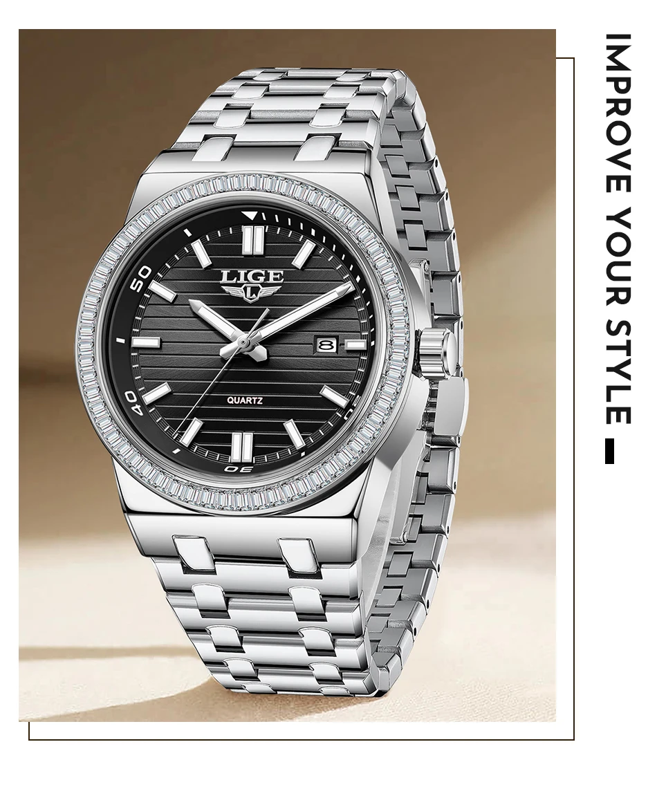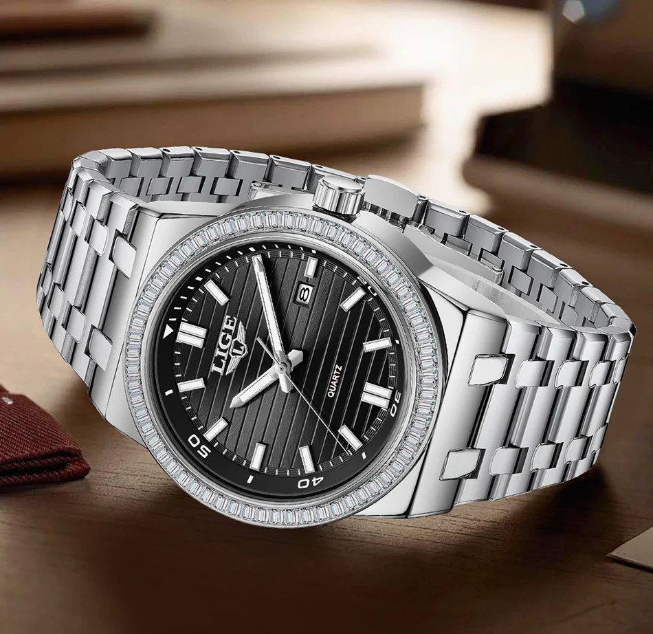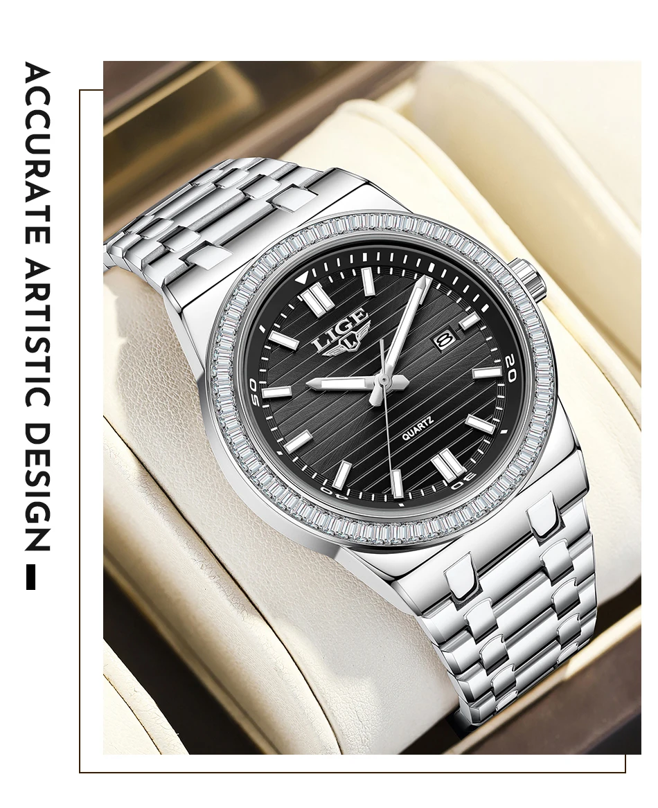 LIGE High Quality Men Watches Business Top Brand Luxury Man Diamond Wristwatch Waterproof Luminous Quartz Watch Calendar Clock