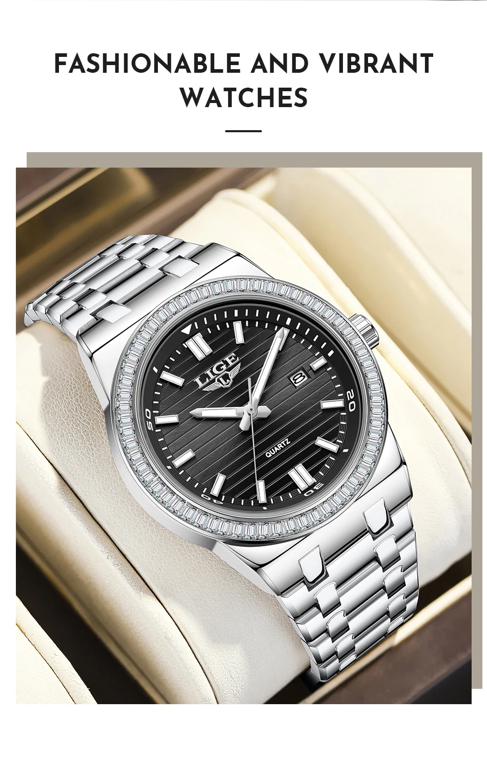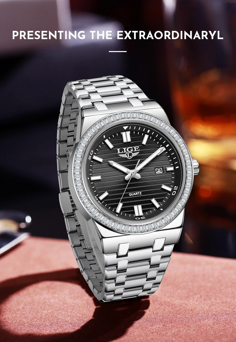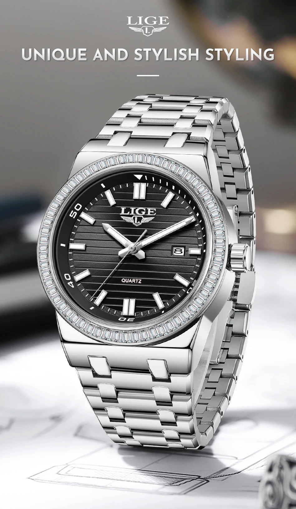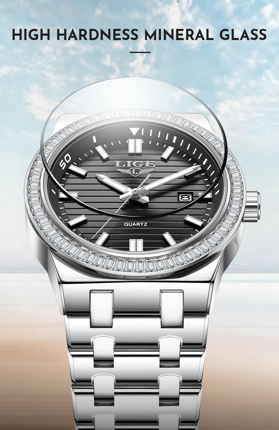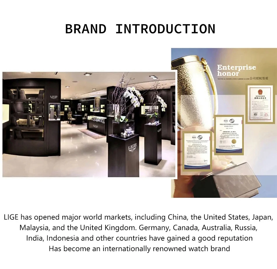 LIGE High Quality Men Watches Business Top Brand Luxury Man Diamond Wristwatch Waterproof Luminous Quartz Watch Calendar Clock